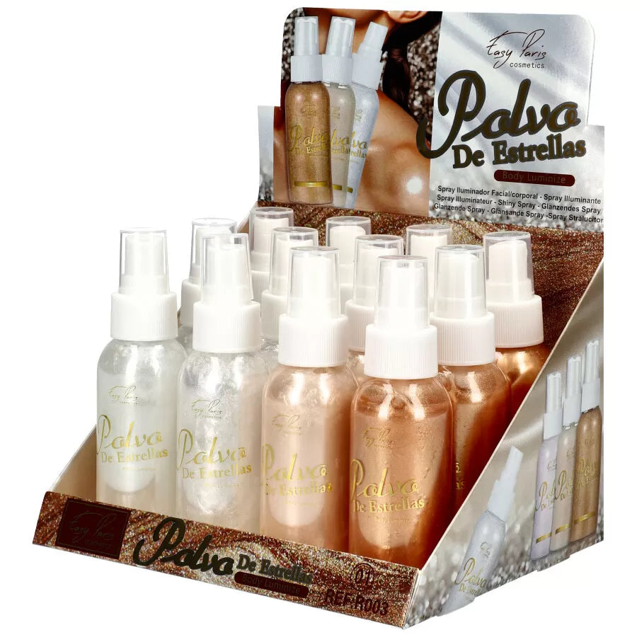 Le pack de 12 pièces d'illuminateur de teint en spray Easy Paris est l'allié parfait pour apporter une touche de lumière et de glamour à votre routine beauté. Ce produit, avec sa référence MR003, est conçu pour illuminer votre visage et votre corps, en offrant un éclat naturel et scintillant. Idéal pour toutes les occasions, il fera briller votre peau en un instant.